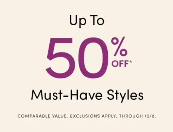 Hurry in and save! Shop in store and enjoy up to 50% off on must-have styles.