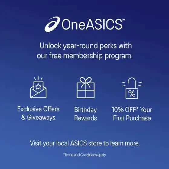 Not a member? Visit your local ASICS Store to join for free & unlock year-round perks.
