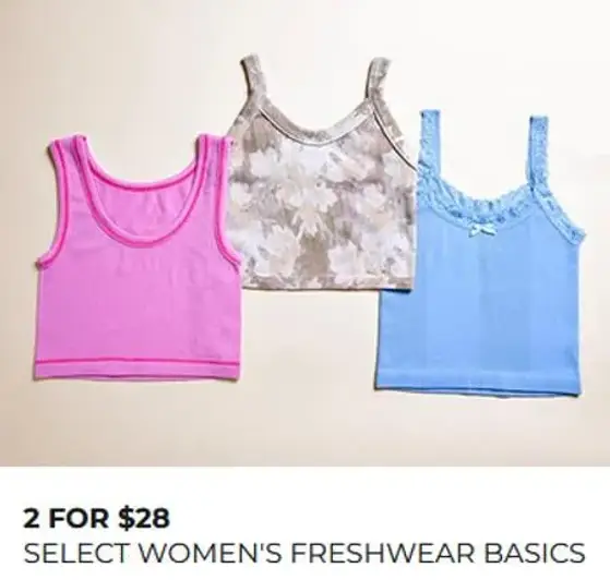 2 FOR $28 SELECT WOMEN'S FRESHWEAR BASICS