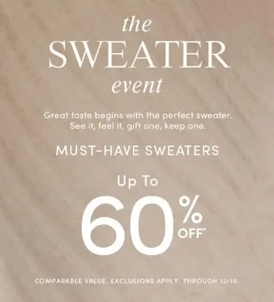 Don't miss out! Shop in store and save up to 60% off on must-have sweaters.