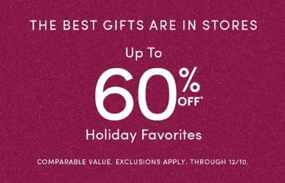 Limited time only! Shop in store and save up to 60% off on holiday favorites.